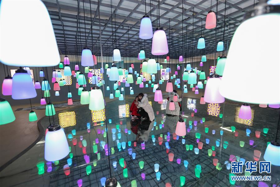 1月21日,在自贡彩灯公园,一对母女在魔幻彩灯中驻足。 新华社记者 江宏景 摄