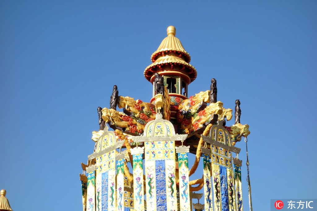 2019年1月20日,北京故宫乾清宫两侧巨型天灯和万寿灯高高屹立在丹陛上下。据故宫介绍,立天灯、万寿灯是清代早中期过年最盛大的活动之一。道光二十年(1840年),被节俭的皇帝取消,距今已消失了近200年,相关文物也早已分散各处。此次故宫工作人员从各个库房中找到了灯身模型、灯联小样,以及灯杆原件,按等比例复原了天灯和万寿灯。刘宏声/人民图片