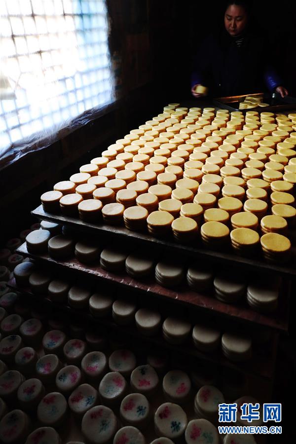 1月21日,重庆市黔江区马喇镇印合村村民莫珊整理玉米糍粑。 新华社发(杨敏 摄)