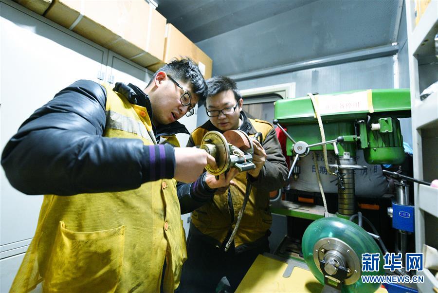 1月21日,作业人员在维护保养探伤轮。 新华社记者 李安 摄