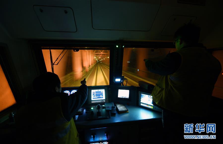 1月22日,司机驾驶探伤车行驶在高铁线路上进行探伤作业。 新华社记者 李安 摄