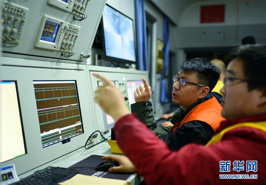 1月21日,作业人员在收集探伤车反馈的探伤波形图。 新华社记者 李安 摄