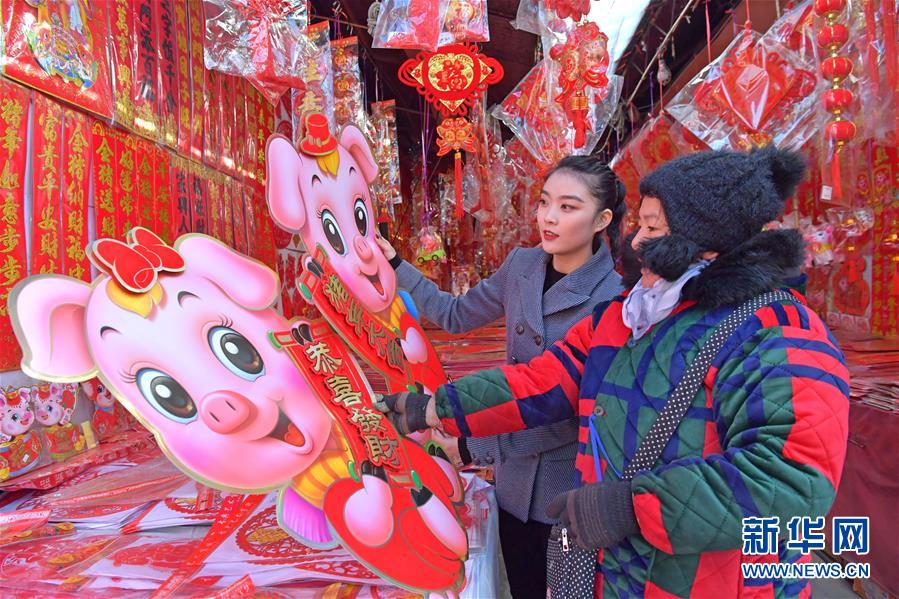 1月22日,市民在河北唐山市丰润区一年货市场内选购新春饰品。 新华社记者 牟宇 摄