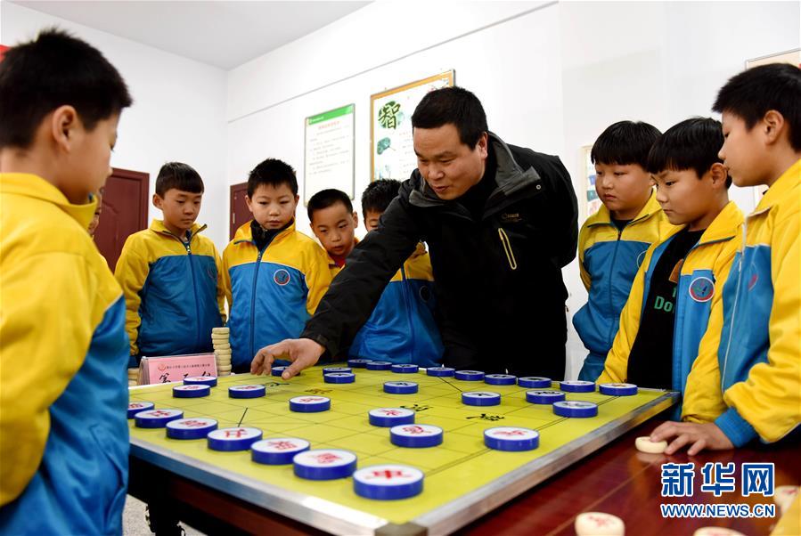 1月22日,南和县新区小学学生在老师指导下学习象棋。 新华社记者 朱旭东 摄