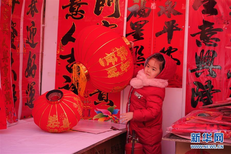 1月22日,一名小女孩在年货大集上手提红灯笼。 新春佳节将近,河北省正定县正定镇的年货大集上年味渐浓。 新华社发(武志伟 摄)