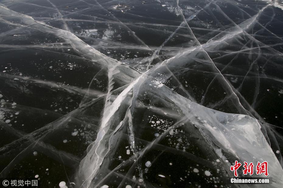 1月22日,吉林省吉林市彩虹桥附近,松花江冰层里出现着白色的气泡景观,吸引着游人观看拍摄。松花江水经过丰满大坝的涡轮机后温度在零上,所以流经吉林市时一年四季不结冰,但是江边水湾出仍然会结冰的,冰层里还会有许许多多成片的气泡,有的像白蘑菇,有的像宝塔,少的几层,多的四五层,有拳头大的,也有豆包大的,还有更小的像黄豆粒大小的,有一串串的,也有单独的。有人说这是由于水底产生的沼气形成的气泡,在上升时来不及“跑”掉而被冻在冰层里了,所以形成了美丽奇特的自然景观。不过今年冬天吉林市的天气并不太冷,冰层也不算太厚,还有许多裂纹,并不时地发出炸裂的声响。朱万昌 摄 图片来源:视觉中国