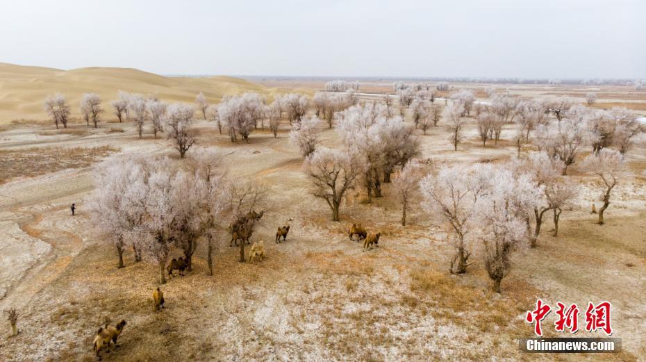 新疆尉犁县境内塔克拉玛干沙漠雪景美如画