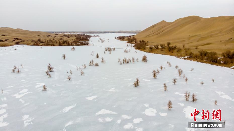 新疆尉犁县境内塔克拉玛干沙漠雪景美如画