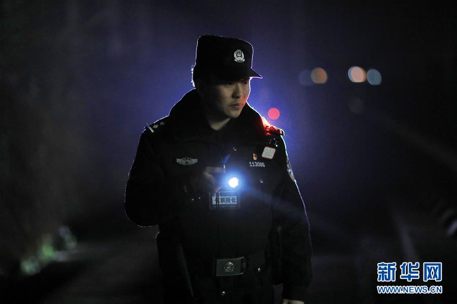 1月22日深夜,民警在贵广高铁线路上沿线巡查。 新华社记者欧东衢摄