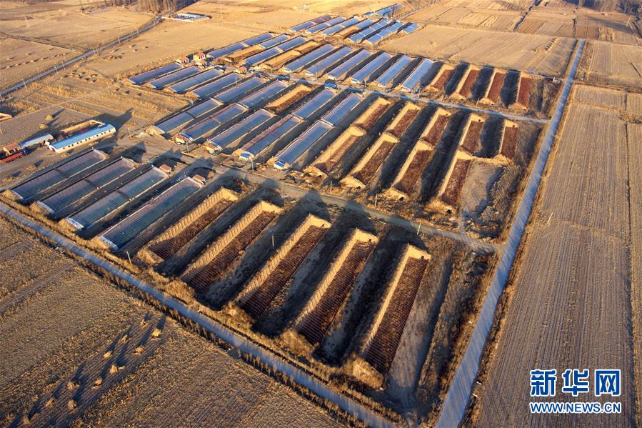 1月22日无人机拍摄的阳高县大白登镇小白登村农业合作社的蔬菜大棚。 新华社记者 曹阳 摄