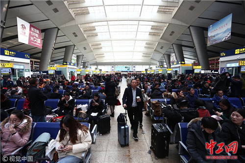 2019年1月21日,春运首日的北京南站候车大厅。