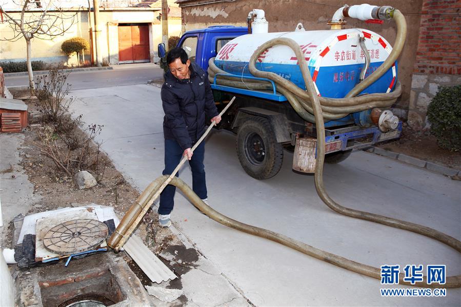 1月22日,在淄博市临淄区辛店街道安里村,管护人员准备抽取旱厕渣液。新华社发(崔立来摄)