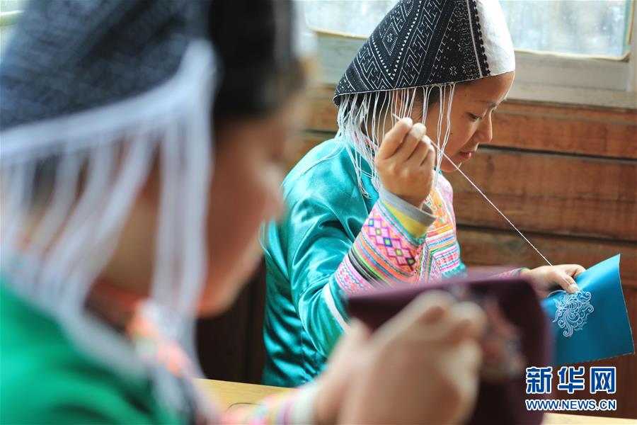 1月23日,贵州榕江县平江镇高鸟村的苗族妇女在刺绣。 新华社记者欧东衢摄