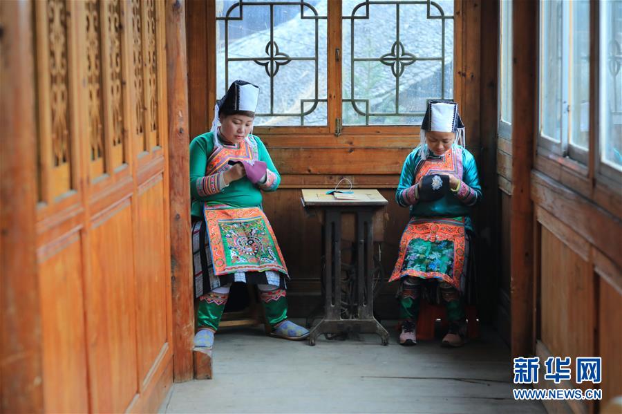 1月23日,贵州榕江县平江镇高鸟村的苗族妇女在刺绣。新华社记者欧东衢摄
