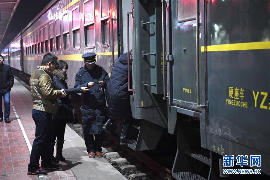 1月23日,旅客在原平站检票上车。新华社记者杨晨光摄