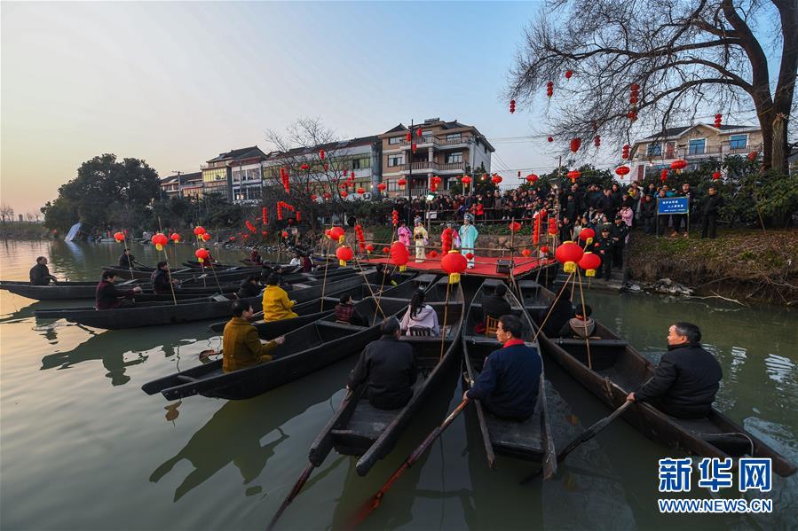 1月23日,河西埭村的百姓在观看传统的水乡社戏。新华社记者 徐昱摄