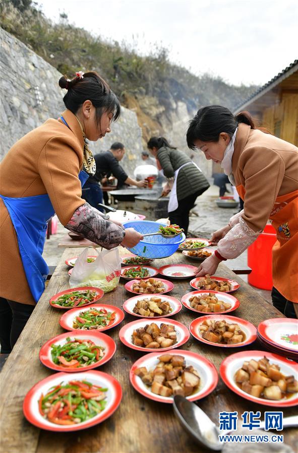 1月23日,村民为“合拢宴”准备菜肴。新华社发(宋文 摄)
