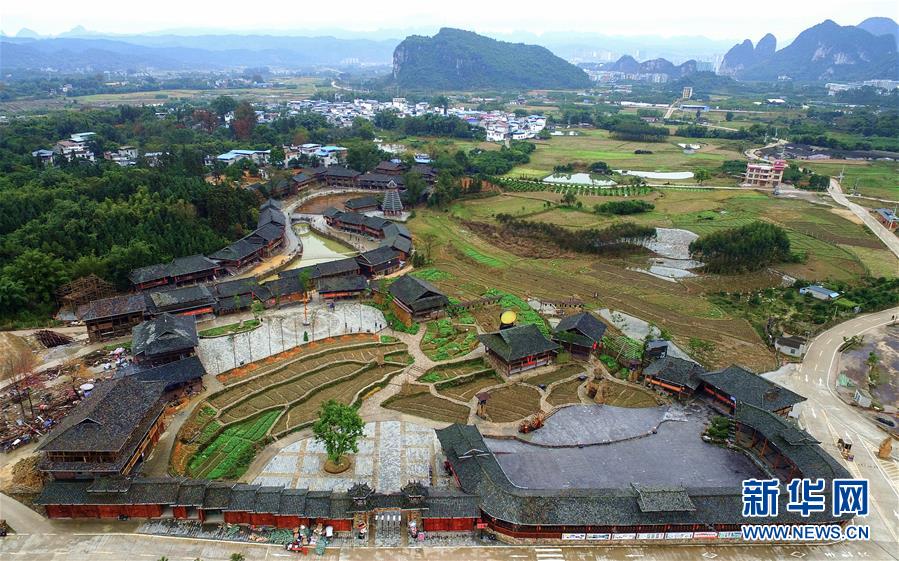 在广西融水苗族自治县双龙沟景区拍摄的梦呜苗寨(1月15日无人机拍摄)。新华社记者陈君清摄
