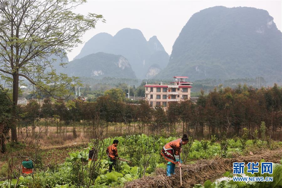 在广西融水苗族自治县双龙沟景区梦呜苗寨,潘杰辉和妻子潘英华在管护田园(1月15日摄)。新华社记者陈君清摄