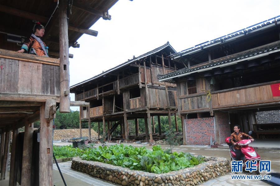 在广西融水苗族自治县双龙沟景区梦呜苗寨,潘杰辉和潘英华准备外出(1月15日摄)。新华社记者陈君清摄