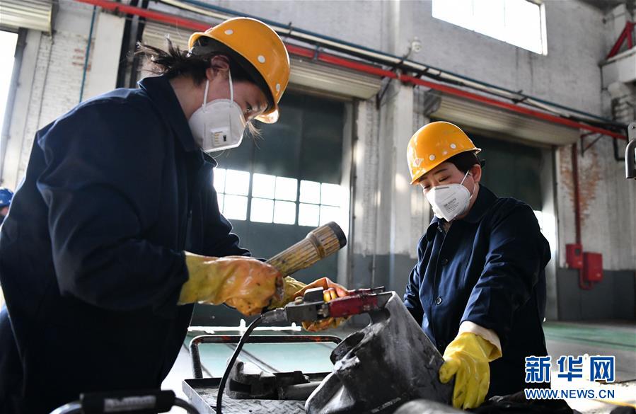 1月23日,探伤组女工张小蕾(左)和孙倩在检查机车零部件。 在中国铁路北京局集团公司天津机务段,有一支全部由女子组成的探伤班组。姑娘们使用多种探伤方法对机车零部件进行全面“体检”,确保铁路运输安全。 新华社记者 李然摄