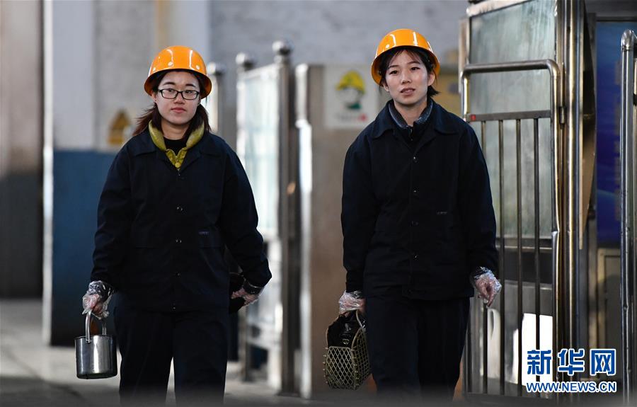1月23日,探伤组女工王晶(左)和于晓萌准备上岗工作。 在中国铁路北京局集团公司天津机务段,有一支全部由女子组成的探伤班组。姑娘们使用多种探伤方法对机车零部件进行全面“体检”,确保铁路运输安全。 新华社记者 李然摄