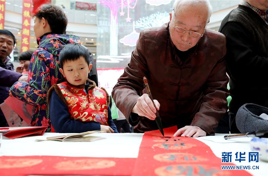 1月23日,一名书法家在活动现场为市民写春联。新华社记者 方喆 摄