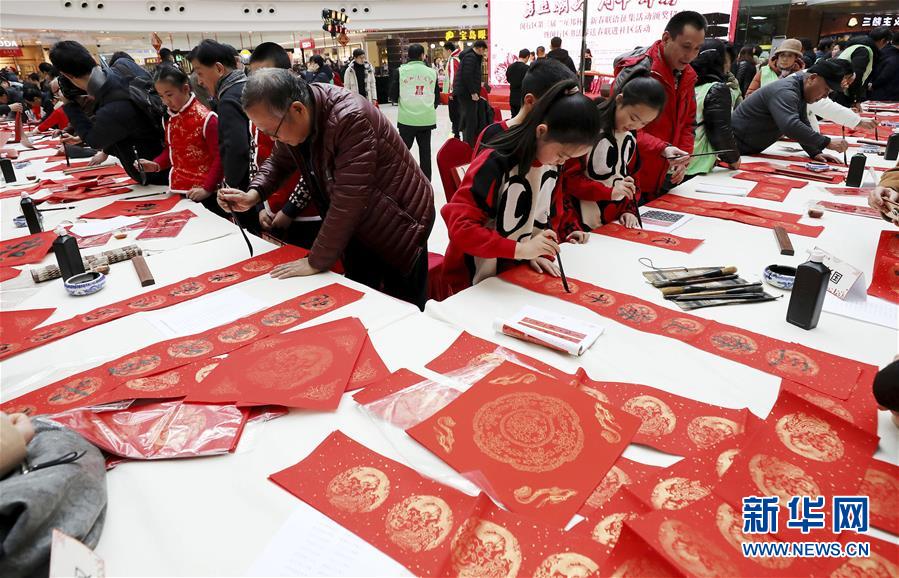1月23日拍摄的送春联进社区活动现场。新华社记者 方喆 摄