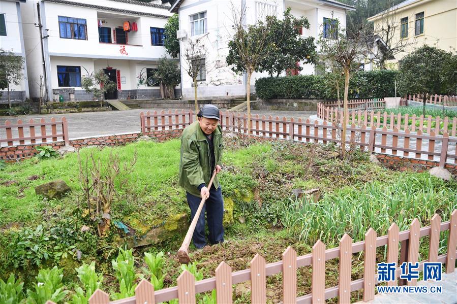 1月23日,62岁的滑石村村民李曦明在自家屋前的菜地里劳作。新华社记者 王全超摄