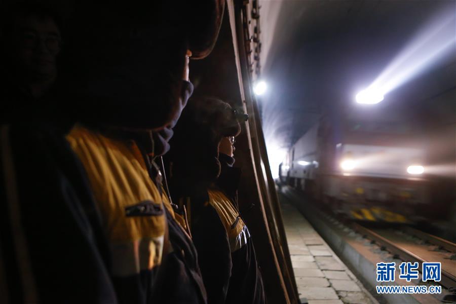 1月23日,桥隧工在集宁隧道内等待列车通过后继续作业。 春运期间的唐呼线格外繁忙,为保证列车运行安全,中国铁路呼和浩特局集团有限公司集宁工务段卓资山路桥车间的桥隧工每天都要在管辖的隧道内检查、除冰、清淤。其中,集宁隧道是结冰最严重的隧道之一,也是桥隧工进出最频繁的地方。他们在刺骨的寒风中,在昏暗的光线下,为通过的列车排除隐患。 新华社记者 虞东升 摄