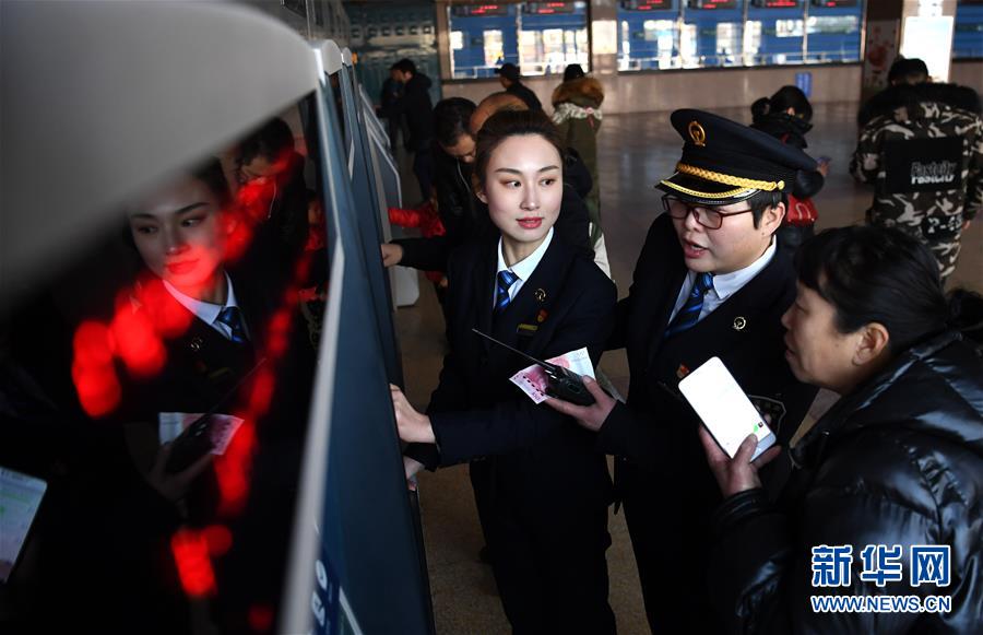 1月23日,刘凤敏(中)带着徒弟严海婷(左)帮助有需要的旅客购票。 今年春运,对中国铁路上海局集团有限公司蚌埠站39号客运值班员刘凤敏来说有点不寻常,除了像往年一样全心投入春运服务工作之外,刘凤敏还正式当起了“师傅”,带起新人,为“洪祥工作室”物色、锻炼新一代传承人。 “洪祥工作室”是蚌埠站的特色服务品牌,由全国劳动模范、蚌埠站原39号客运值班员路洪祥创办。2004年刘凤敏接替退休的路洪祥成为“洪祥工作室”的传承人,为老、幼、病、残、孕等重点旅客提供便利服务。2020年,刘凤敏将要退休,借助春运这个“练兵”平台,刘凤敏开始带徒弟,希望从中挑选出“洪祥工作室”下一代的传承人,将39号客运值班员的服务精神继续传递下去。 新华社记者刘军喜摄