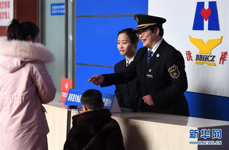 1月23日,刘凤敏(右一)带着徒弟王晓婷为进站旅客提供咨询服务。 今年春运,对中国铁路上海局集团有限公司蚌埠站39号客运值班员刘凤敏来说有点不寻常,除了像往年一样全心投入春运服务工作之外,刘凤敏还正式当起了“师傅”,带起新人,为“洪祥工作室”物色、锻炼新一代传承人。 “洪祥工作室”是蚌埠站的特色服务品牌,由全国劳动模范、蚌埠站原39号客运值班员路洪祥创办。2004年刘凤敏接替退休的路洪祥成为“洪祥工作室”的传承人,为老、幼、病、残、孕等重点旅客提供便利服务。2020年,刘凤敏将要退休,借助春运这个“练兵”平台,刘凤敏开始带徒弟,希望从中挑选出“洪祥工作室”下一代的传承人,将39号客运值班员的服务精神继续传递下去。 新华社记者刘军喜摄