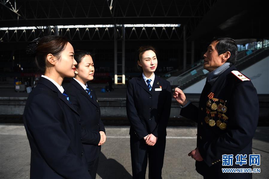 1月23日,“洪祥工作室”创办者路洪祥(右一)和未来的传承人交流服务旅客经验。 今年春运,对中国铁路上海局集团有限公司蚌埠站39号客运值班员刘凤敏来说有点不寻常,除了像往年一样全心投入春运服务工作之外,刘凤敏还正式当起了“师傅”,带起新人,为“洪祥工作室”物色、锻炼新一代传承人。 “洪祥工作室”是蚌埠站的特色服务品牌,由全国劳动模范、蚌埠站原39号客运值班员路洪祥创办。2004年刘凤敏接替退休的路洪祥成为“洪祥工作室”的传承人,为老、幼、病、残、孕等重点旅客提供便利服务。2020年,刘凤敏将要退休,借助春运这个“练兵”平台,刘凤敏开始带徒弟,希望从中挑选出“洪祥工作室”下一代的传承人,将39号客运值班员的服务精神继续传递下去。 新华社记者刘军喜摄