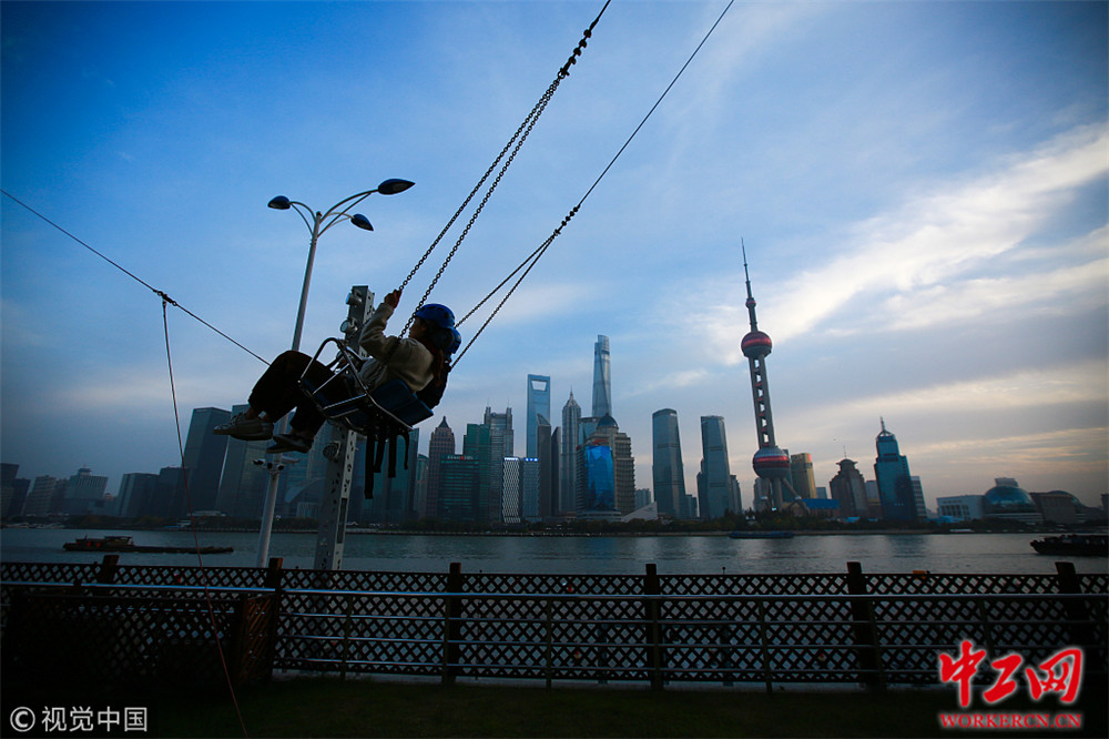 2019年1月21日,上海,夜色渐浓,游玩的孩子依然很多。