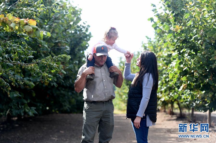 美国95%以上的榛子产于俄勒冈州,尤其是有着110多年商业种植历史的威拉米特河谷地区,当地800多个家庭农场以此为生。科尔曼家族在这里种植榛子已有六代人。 中国是当地榛子的最大市场,每年60%以上的当地榛子都带壳销往中国。因为看好中国市场的发展前景,当地果农近年来不断扩大种植面积。 但果农们没想到,新树种虽能抗病虫,却无力抵挡美国发起对华经贸摩擦带来的危害。科尔曼家族呼吁,不应让中美间暂时的摩擦把凝结着传统、未来和希望的榛子树连根拔起。 这是2018年9月10日,在美国俄勒冈州波特兰市南部威拉米特河谷,科尔曼家族果农埃米(右)和父亲基思、女儿普雷斯莉在自家榛子树果园里。 新华社记者 吴晓凌 摄