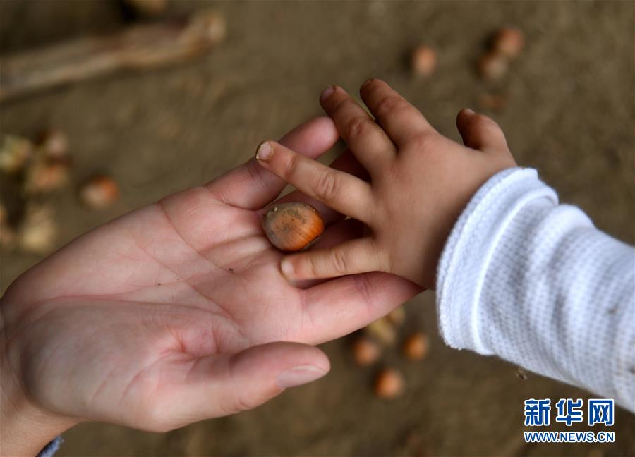 美国95%以上的榛子产于俄勒冈州,尤其是有着110多年商业种植历史的威拉米特河谷地区,当地800多个家庭农场以此为生。科尔曼家族在这里种植榛子已有六代人。 中国是当地榛子的最大市场,每年60%以上的当地榛子都带壳销往中国。因为看好中国市场的发展前景,当地果农近年来不断扩大种植面积。 但果农们没想到,新树种虽能抗病虫,却无力抵挡美国发起对华经贸摩擦带来的危害。科尔曼家族呼吁,不应让中美间暂时的摩擦把凝结着传统、未来和希望的榛子树连根拔起。 这是2018年9月10日,在美国俄勒冈州波特兰市南部威拉米特河谷,普雷斯莉从母亲埃米手上接过一个榛子。 新华社记者 吴晓凌 摄