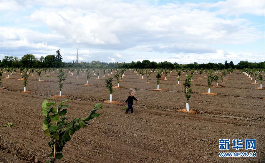 美国95%以上的榛子产于俄勒冈州,尤其是有着110多年商业种植历史的威拉米特河谷地区,当地800多个家庭农场以此为生。科尔曼家族在这里种植榛子已有六代人。 中国是当地榛子的最大市场,每年60%以上的当地榛子都带壳销往中国。因为看好中国市场的发展前景,当地果农近年来不断扩大种植面积。 但果农们没想到,新树种虽能抗病虫,却无力抵挡美国发起对华经贸摩擦带来的危害。科尔曼家族呼吁,不应让中美间暂时的摩擦把凝结着传统、未来和希望的榛子树连根拔起。 这是2018年9月10日,在美国俄勒冈州波特兰市南部威拉米特河谷,科尔曼家族果农埃米的女儿普雷斯莉在自家榛子树果园里玩耍。 新华社记者 吴晓凌 摄