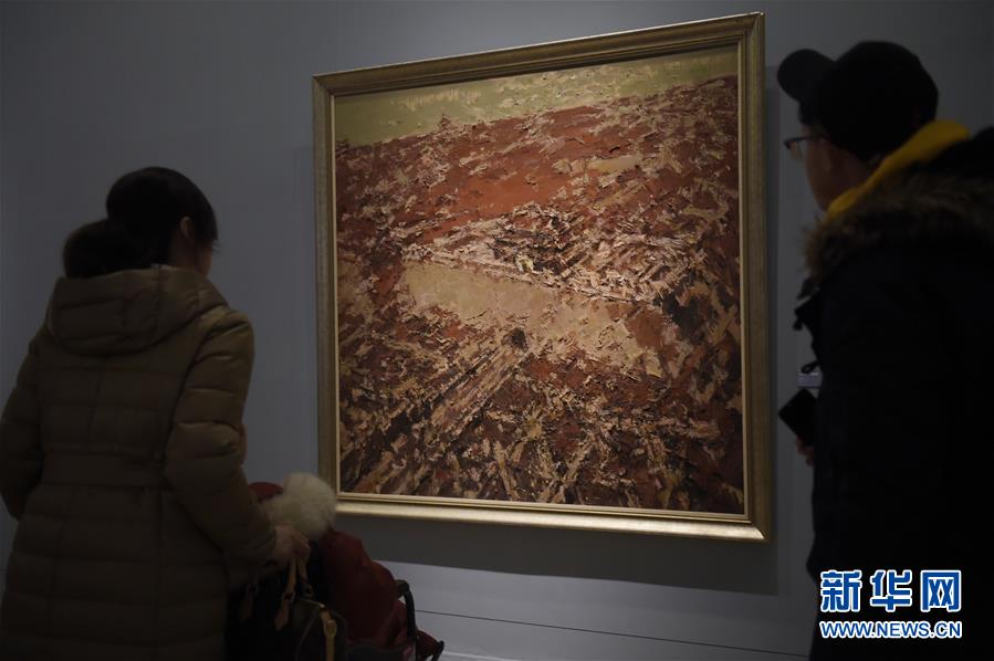 1月24日,观众在中国美术馆参观展出的许江作品《大北京·老城墙》。 新华社记者 鲁鹏 摄