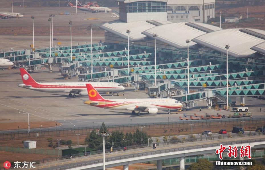 1月24日,春运第四天,位于南昌昌北国际机场附近的中国民用航空华东地区空中交通管理局江西分局(民航江西空管分局)塔台上,管制员正与即将起飞的航班机长保持通话。每一架航班要准点起飞,安全飞行、顺利到达,都离不开空中交通管制员的精准指挥,他们被称为“空中交警”,也是民航事业发展的幕后英雄。记者走近他们,以别样视角看机场,揭秘江西上空的飞行故事。图为飞机停在候机楼旁。图片来源:图片来源:东方IC 版权作品 请勿转载