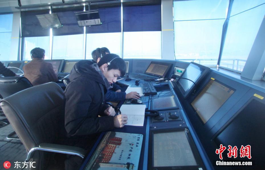 1月24日,春运第四天,位于南昌昌北国际机场附近的中国民用航空华东地区空中交通管理局江西分局(民航江西空管分局)塔台上,管制员正与即将起飞的航班机长保持通话。每一架航班要准点起飞,安全飞行、顺利到达,都离不开空中交通管制员的精准指挥,他们被称为“空中交警”,也是民航事业发展的幕后英雄。记者走近他们,以别样视角看机场,揭秘江西上空的飞行故事。图为塔台管制室内,管制员仔细工作,守护旅客安全。图片来源:图片来源:东方IC 版权作品 请勿转载