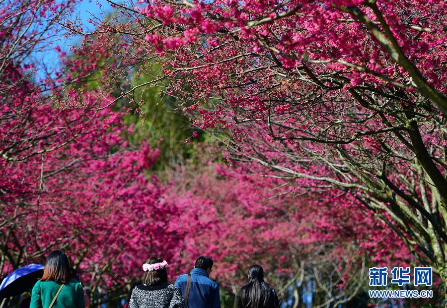 1月24日,游客在台品樱花茶园欣赏樱花景色。 新华社记者 魏培全 摄