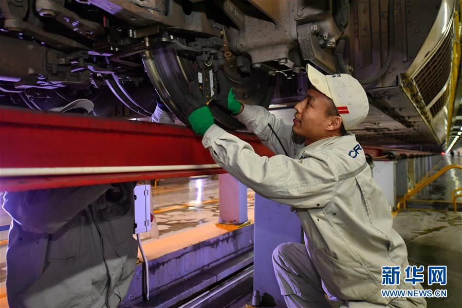 1月24日,太原车辆段动车所二级修组检修员王旭东在更换配件。