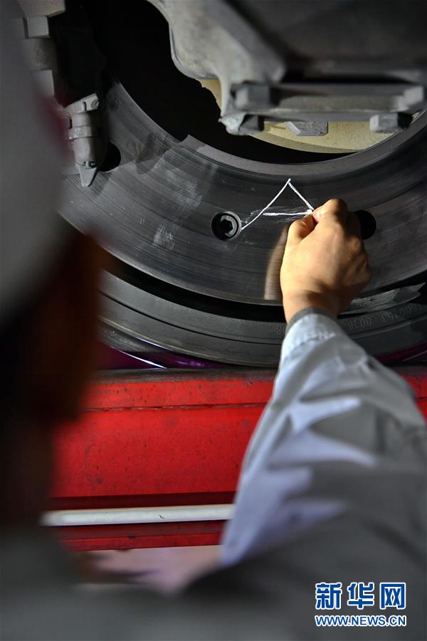 1月24日,太原车辆段动车所二级修组工长李世明标记“合”字的第三笔。