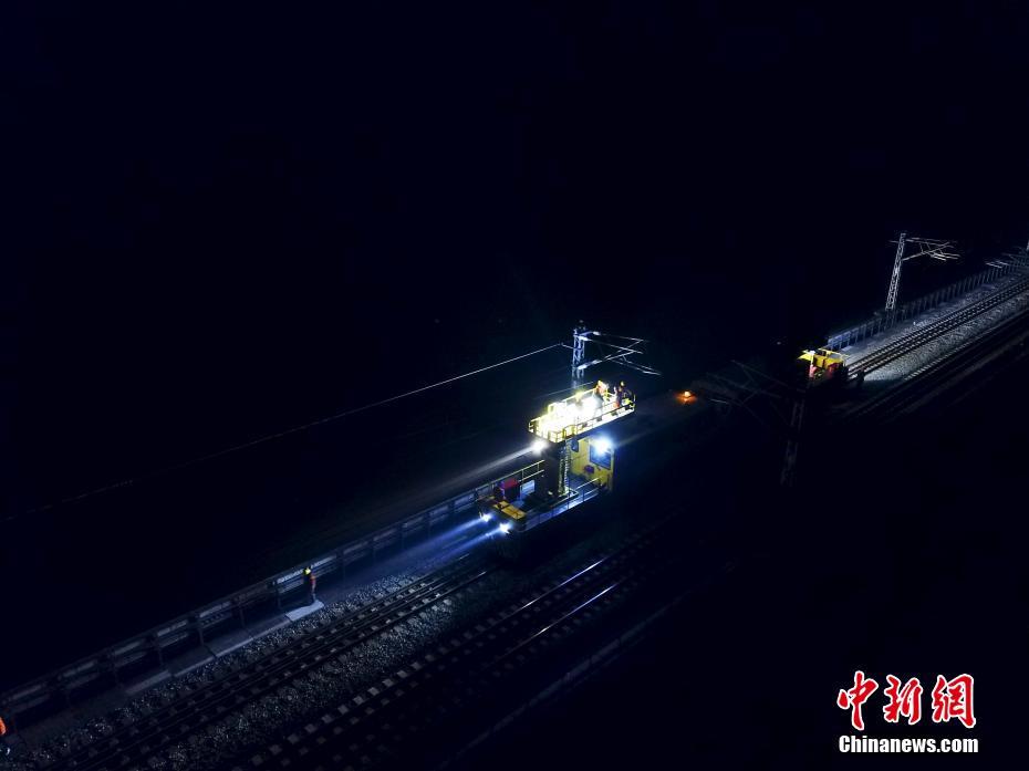 供电检修轨道车运行至九景衢铁路鄱阳湖特大桥,正在进行作业前准备。文/张富淼 图/丁波