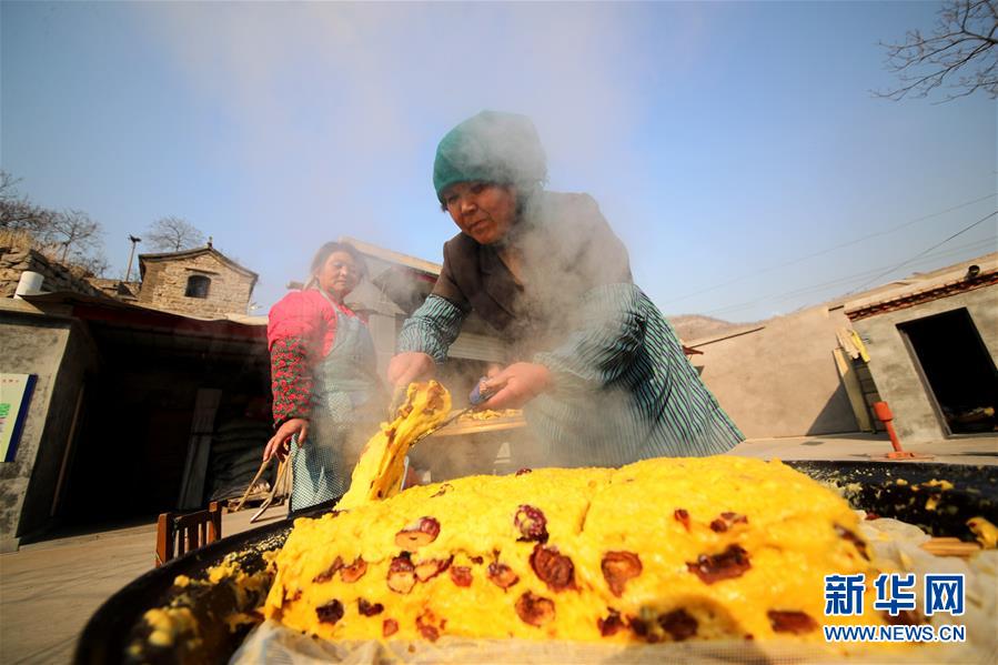 1月24日,石家庄市井陉县小作镇沙窑村的村民制作的年糕出锅。
