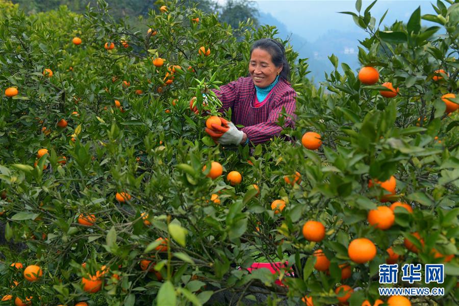 春节前夕,湖北省恩施土家族苗族自治州宣恩县的橙农忙着采摘、分拣晚熟甜橙,供应春节市场。
