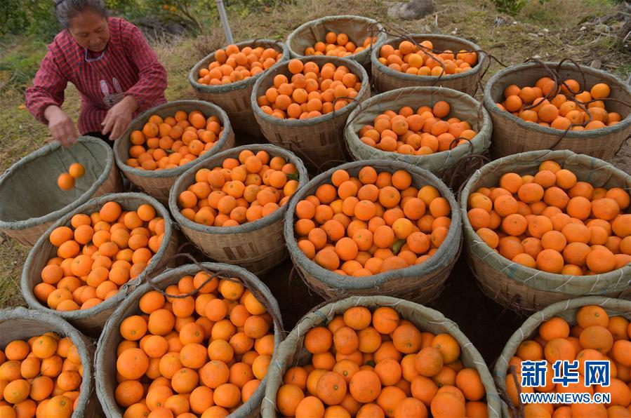 春节前夕,湖北省恩施土家族苗族自治州宣恩县的橙农忙着采摘、分拣晚熟甜橙,供应春节市场。