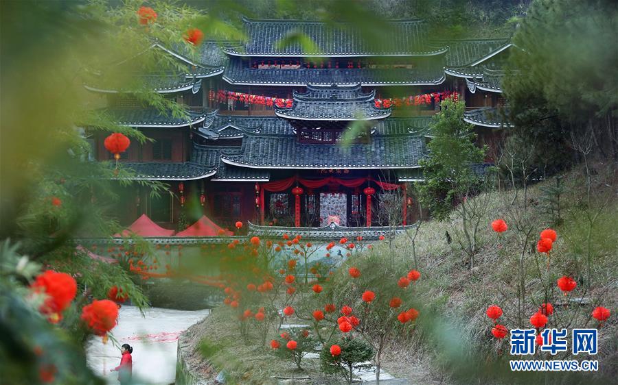 1月24日,在靖州苗族侗族自治县三锹乡元贞凤冲村,苗家大院张灯结彩、喜气洋洋,苗族阿哥吴鉴霖将在这里迎娶苗家阿妹杨小娟。 当日,湖南省怀化市靖州苗族侗族自治县三锹乡元贞凤冲村的苗族阿哥吴鉴霖与苗族阿妹杨小娟身着苗族盛装,按苗家传统习俗举办了一场热闹的苗家传统婚礼。传统的苗族婚礼包括接伞、祭祖、吃合欢酒、挑喜水等仪式。 新华社发(刘杰华 摄)