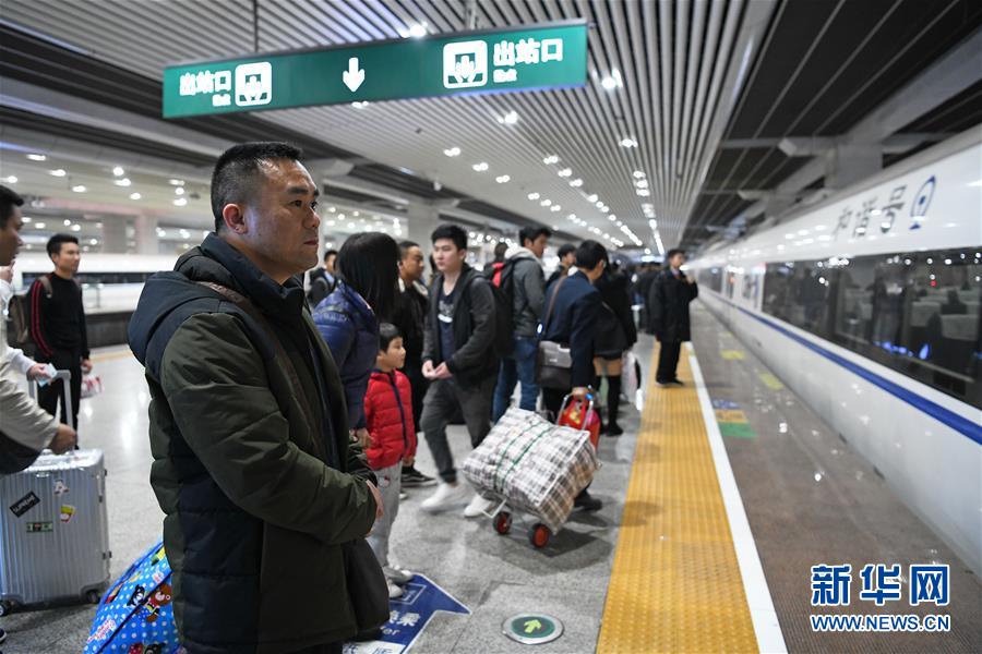 1月22日晚,换上便装的李小华在广州南站等待开往韶关的列车进站。结束了多天的“连轴转”后,按照排班表,他可以有一天半的“大休”时间回趟家。 新华社记者 梁旭 摄