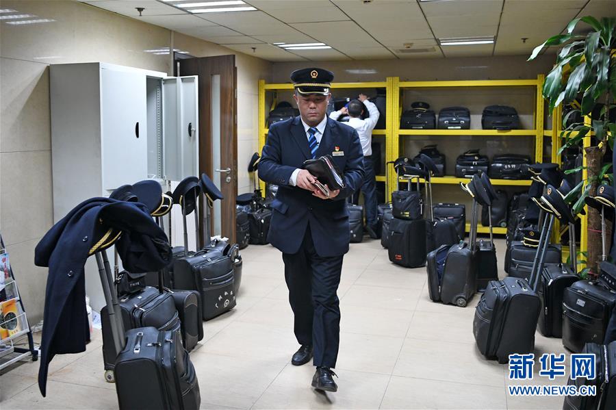 1月21日,在广州南站广州机务段高铁运用车间,李小华边走边整理出勤要用的物品。新华社记者 梁旭 摄